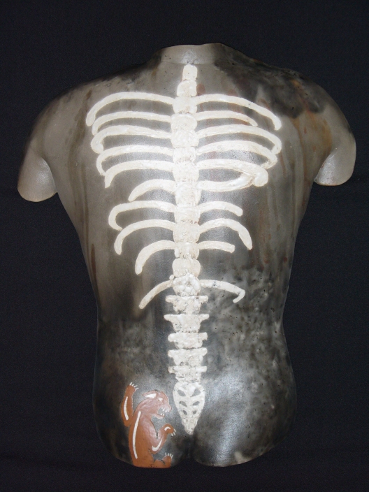 Raku clay with raku firing.