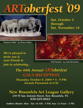 Artoberfest; October 3 - November 14, 2009; New Braunfels Art League Gallery, New Braunfels, TX; Art available for sale