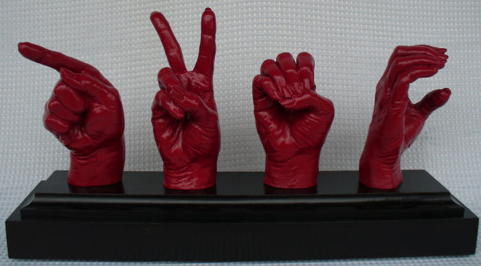"GVEC Sign Language" 2009 Size: Life Size Resin and Wood Commissioned by: GVEC Seguin Office 927 North Highway 46 Seguin, TX 78155 CLICK HERE FOR LARGER IMAGE |