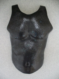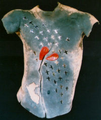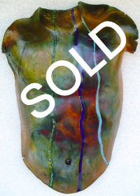 "Heart Armor" (C-64) 1999 Size (H/W/D): 20.5” x 17” x 3.75” Weight: 6.25 lbs. Raku clay with glaze. Price: $400.00 CLICK HERE FOR LARGER IMAGE AND OR PURCHASE |
