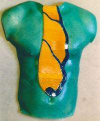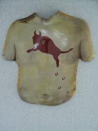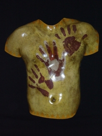 "Faux Torso" (C-43) 1997 Size (H/W/D): 20.25” x 17.75” x 4.75” Weight: 9.5 lbs. Acrylic on earthenware. Price: $500.00 CLICK HERE FOR LARGER IMAGE AND OR PURCHASE |