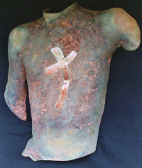 "Shackled" 2008 Size: 11.5” x 5.5” x 8.25" Plaster, Steel & Clay Price: $950.00 CLICK HERE FOR LARGER IMAGE |